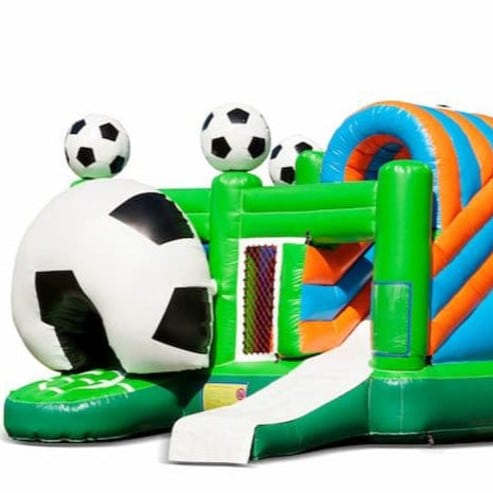 Diese tolle, auffallende Multiplay Fußball Hüpfburg ist ein Highlight. Klettern Sie auf die Hüpfburg, überwinden Sie die lebendigen Objekte und sausen Sie die überdachte Rutsche hinunter! Unsere Multiplay Fußball Hüpfburg verfügt über auffällige und vor allem kinderfreundlichen 3D-Objekte auf der Hüpfburg passend zum Thema! Die Kinder in diesem Hüpfparadies kommen nicht zu kurz, Spielspaß garantiert!